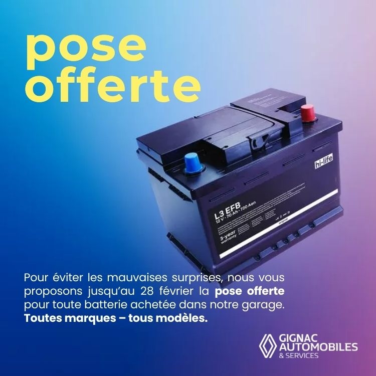 👉 Jusqu’au 28 février, la pose est offerte pour toute batterie achetée dans notre garage.